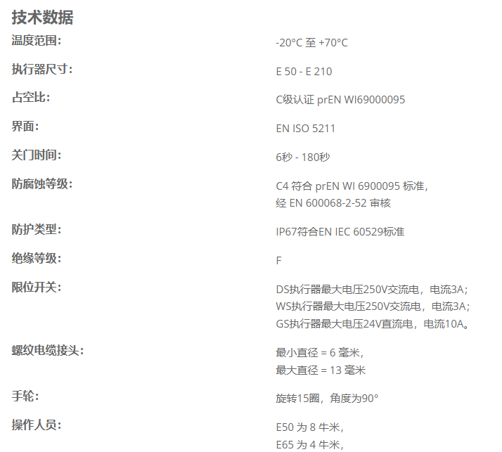 EBRO 电动执行器E50-E210系列